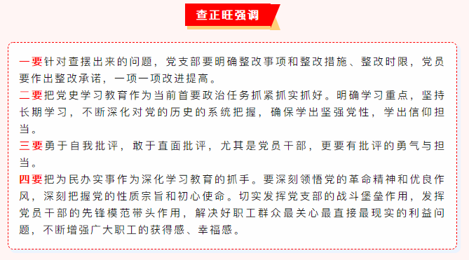 查正旺在點評中指出,這次專題組織生活會,各支部重視、黨員認真、準備充分、主題突出、程序規(guī)范,取得了較好的效果,達到預期目標。支部黨員交流學習體會、盤點理論學習收獲,不僅是對前一段時間黨史學習教育的階段性檢驗,也能對下一步黨史學習教育起到推動作用。